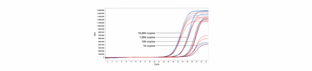 With the Air-Dryable™ Direct DNA qPCR Saliva and Air-Dryable™ Direct RNA/DNA qPCR Saliva, you can see down to 1 copy in a 20 µL reaction.