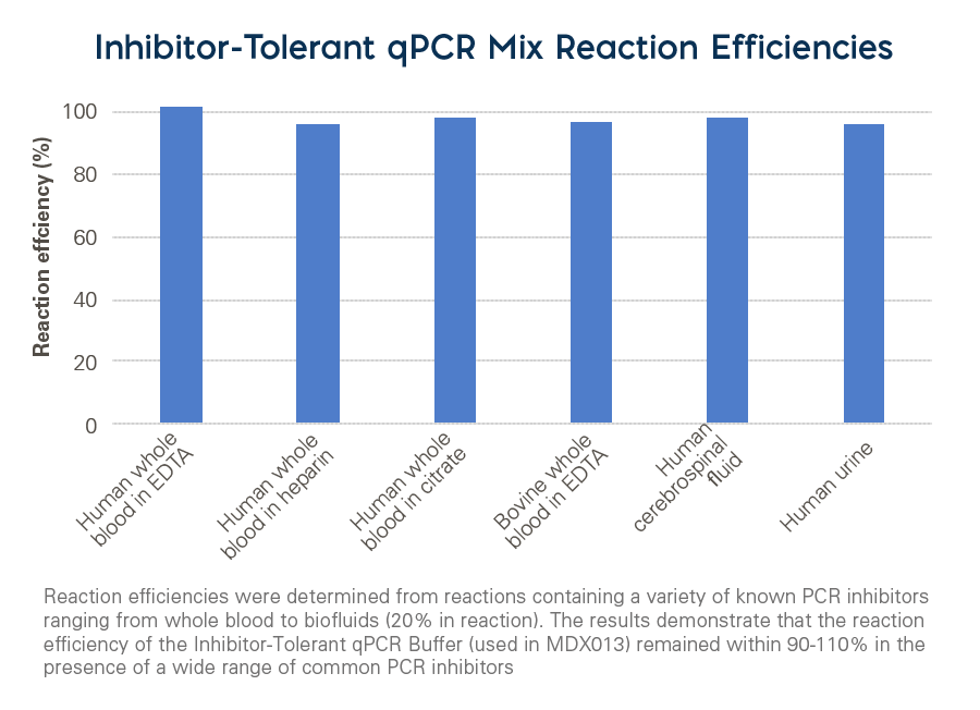 A variety of PCR inhibitors inherent to clinical and environmental samples can negatively impact the sensitivity and accuracy of a molecular assay. Conventionally, to overcome this, specimens undergo processing before testing. However, extraction technologies are not 100% efficient and can impact the amount of target nucleic acid available for testing. Some PCR inhibitors can also co-elute following purification, reducing the efficiency, particularly in quantitative PCR multiplex assays and may even induce false-negative assay results.